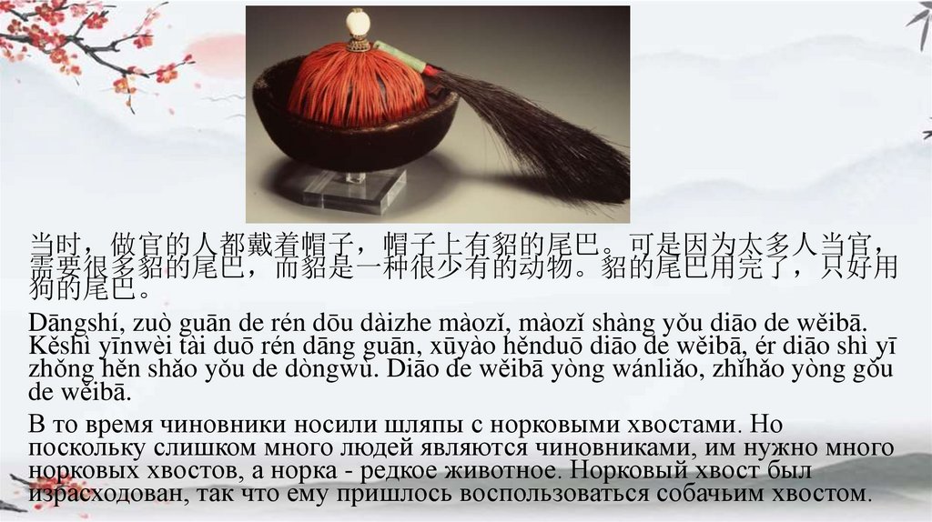 В то время чиновники носили шляпы с норковыми хвостами. Но