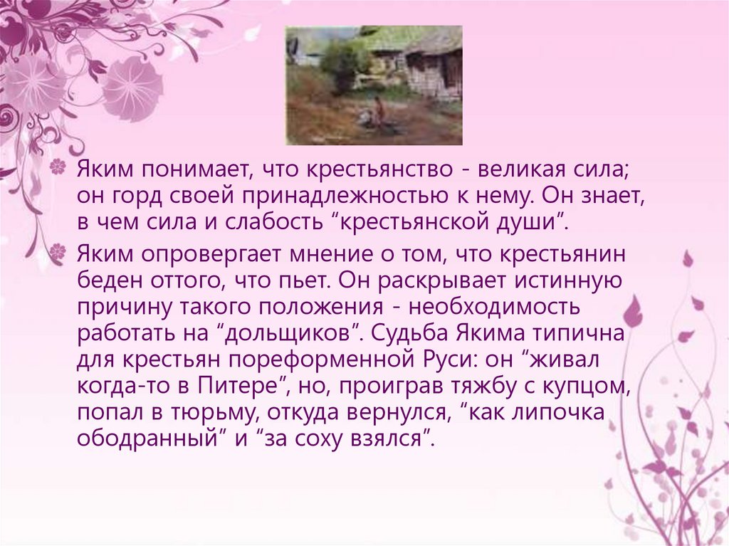 Яким понимает, что крестьянство - великая сила;он горд своей принадлежностью к нему. Он знает,