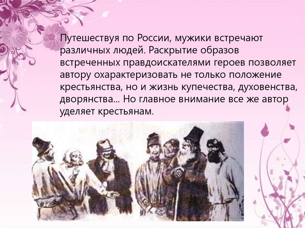 Путешествуя по России, мужики встречаютразличных людей. Раскрытие образов