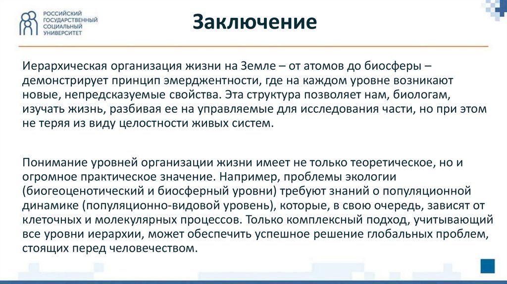 Понимание уровней организации жизни имеет не только теоретическое, но и