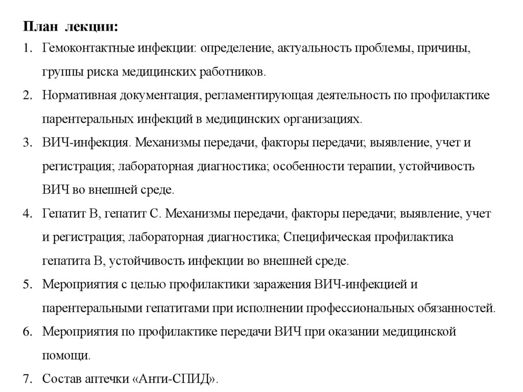 План лекции:1. Гемоконтактные инфекции: определение, актуальность проблемы, причины,