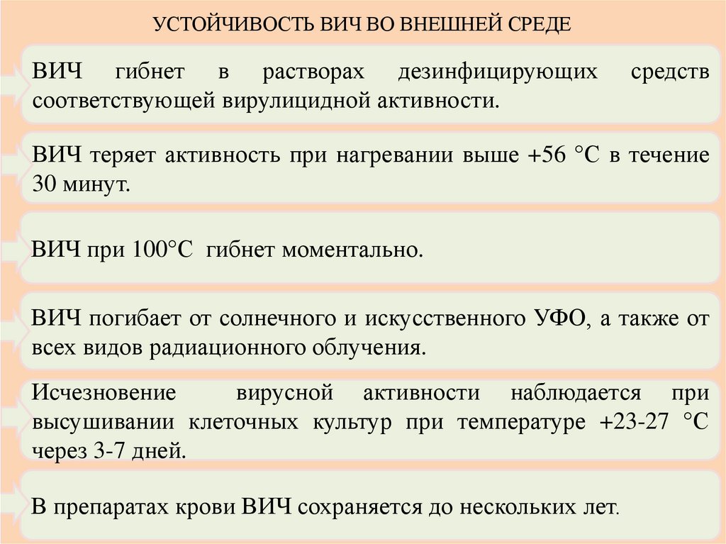 8. Расскажите об устойчивости ВИЧ во внешней среде.