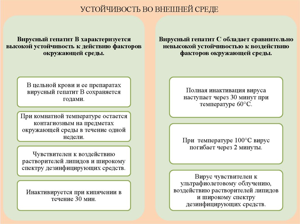 13. Расскажите об устойчивости гепатита В и гепатита С во внешней среде.