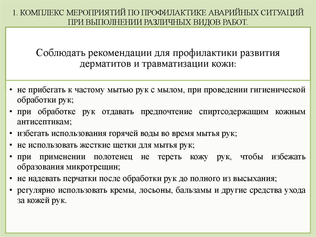 • воздерживаться от проведения манипуляций, связанных с риском возникновения