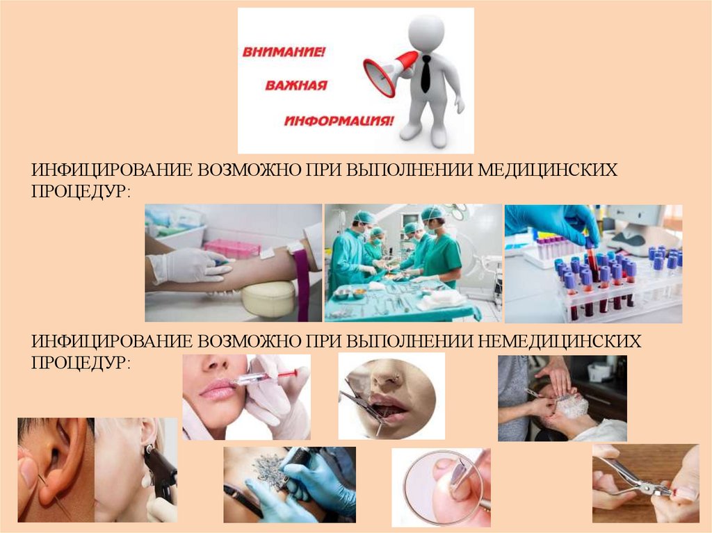 ИНФИЦИРОВАНИЕ ВОЗМОЖНО ПРИ ВЫПОЛНЕНИИ МЕДИЦИНСКИХПРОЦЕДУР: