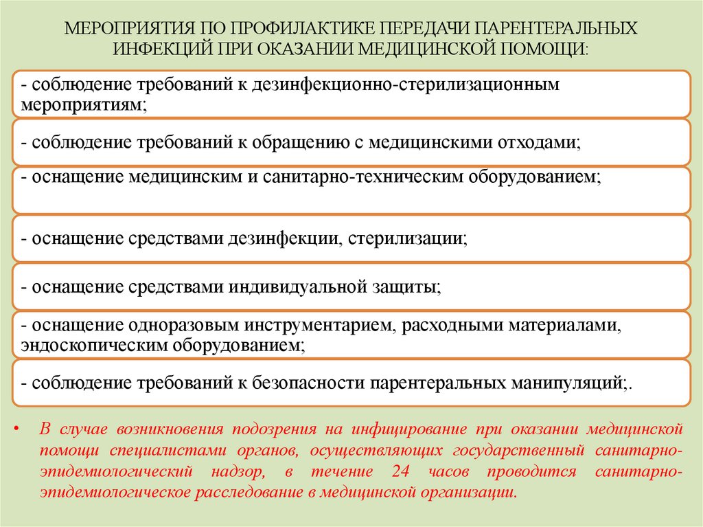 МЕРОПРИЯТИЯ ПО ПРОФИЛАКТИКЕ ПЕРЕДАЧИ ПАРЕНТЕРАЛЬНЫХИНФЕКЦИЙ ПРИ ОКАЗАНИИ МЕДИЦИНСКОЙ ПОМОЩИ: