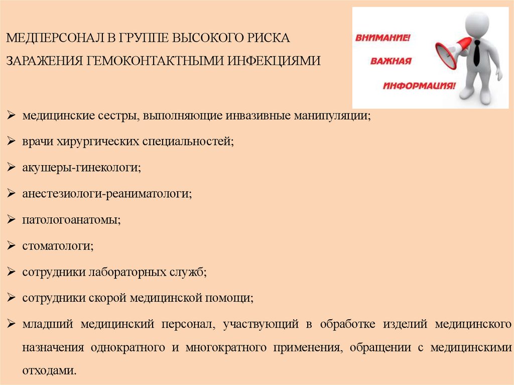 МЕДПЕРСОНАЛ В ГРУППЕ ВЫСОКОГО РИСКАЗАРАЖЕНИЯ ГЕМОКОНТАКТНЫМИ ИНФЕКЦИЯМИ