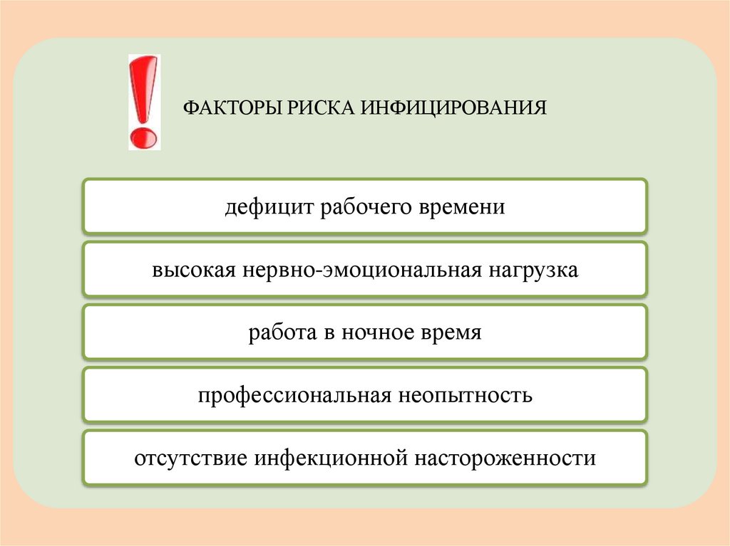ФАКТОРЫ РИСКА ИНФИЦИРОВАНИЯдефицит рабочего времени