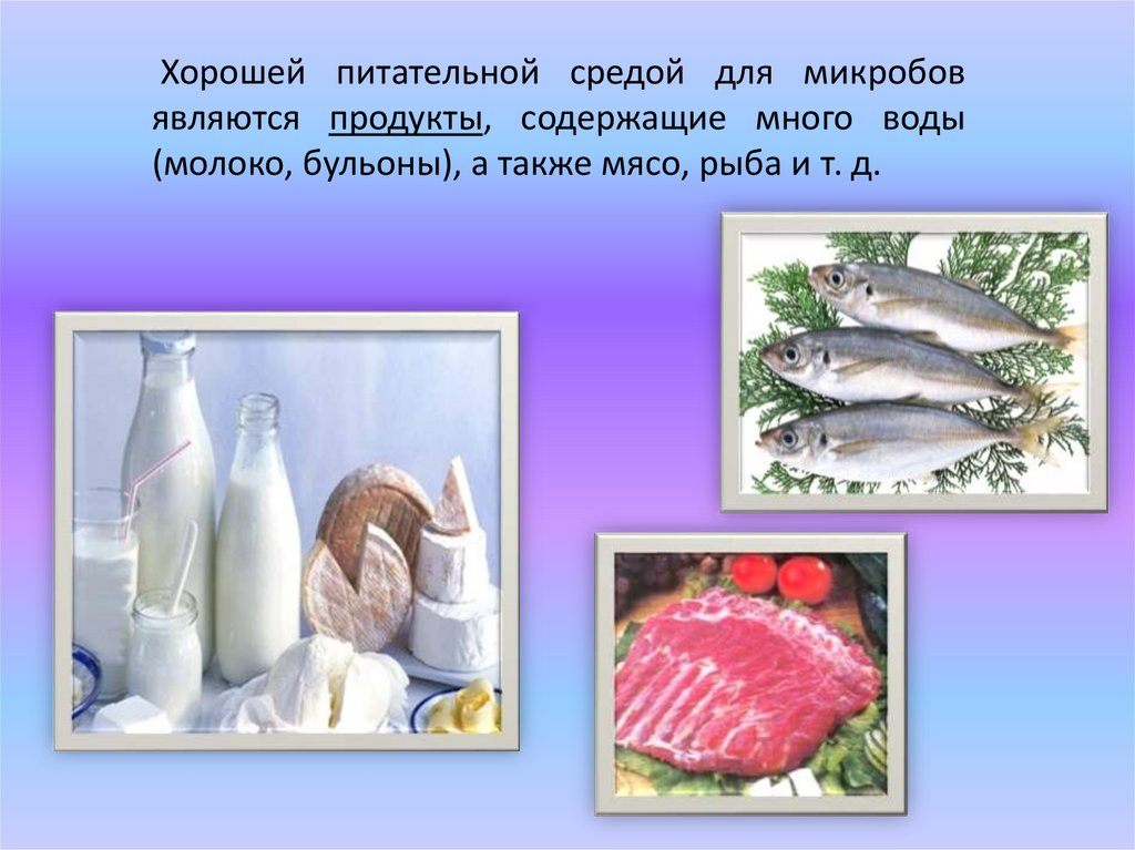 Хорошей питательной средой для микробовявляются продукты, содержащие много воды