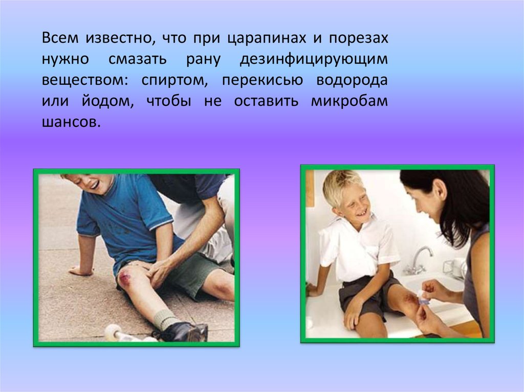 Всем известно, что при царапинах и порезахнужно смазать рану дезинфицирующим