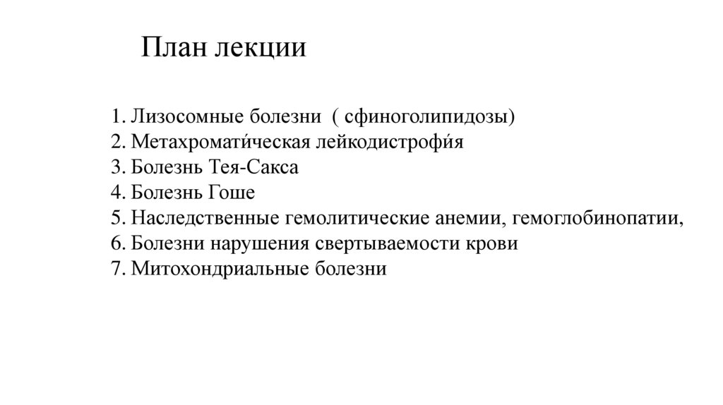 План лекции1. Лизосомные болезни ( сфиноголипидозы)