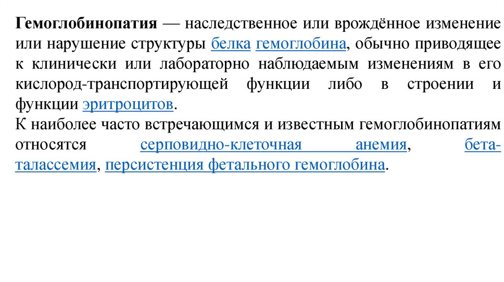 5. Наследственные гемолитические анемии, гемоглобинопатии,