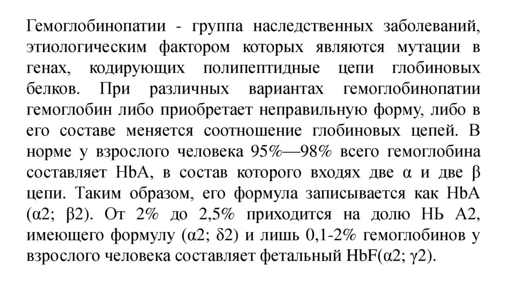в крови, а также обнаружении мутаций в гене β-цепи гемоглобина при