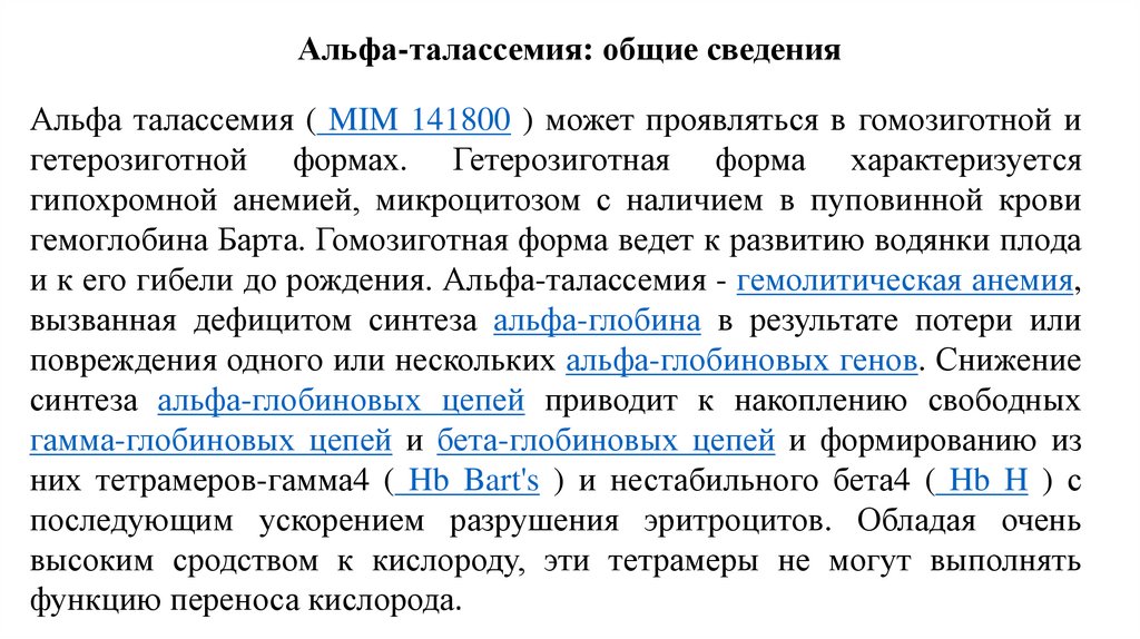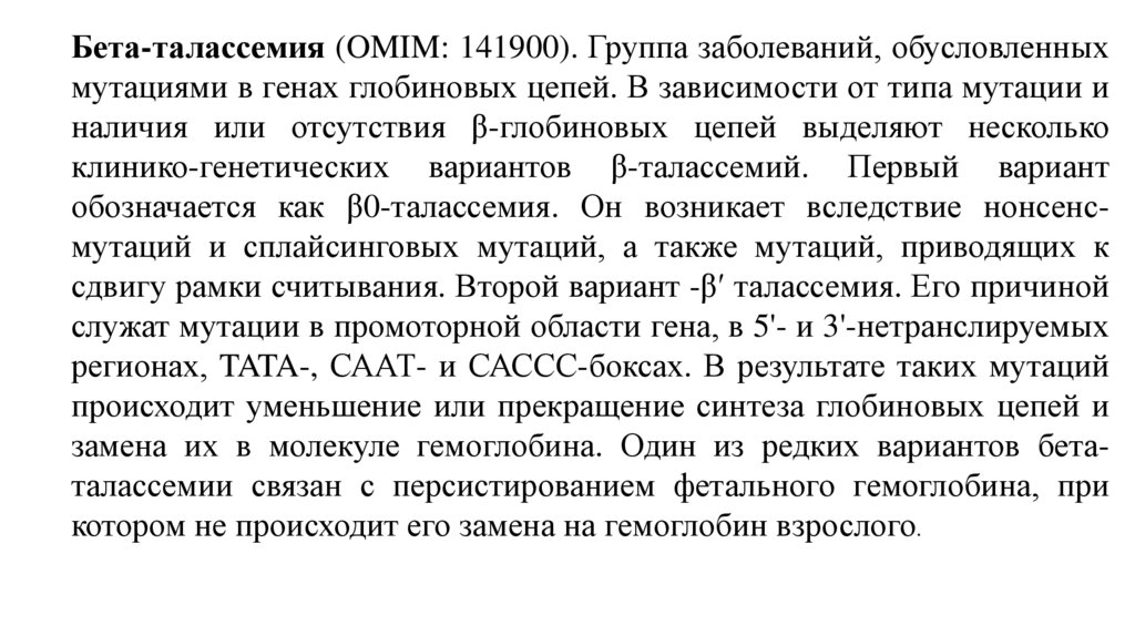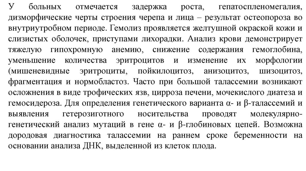 молекулярногенетический анализ мутаций в гене α- и β-глобиновых цепей. Возможна