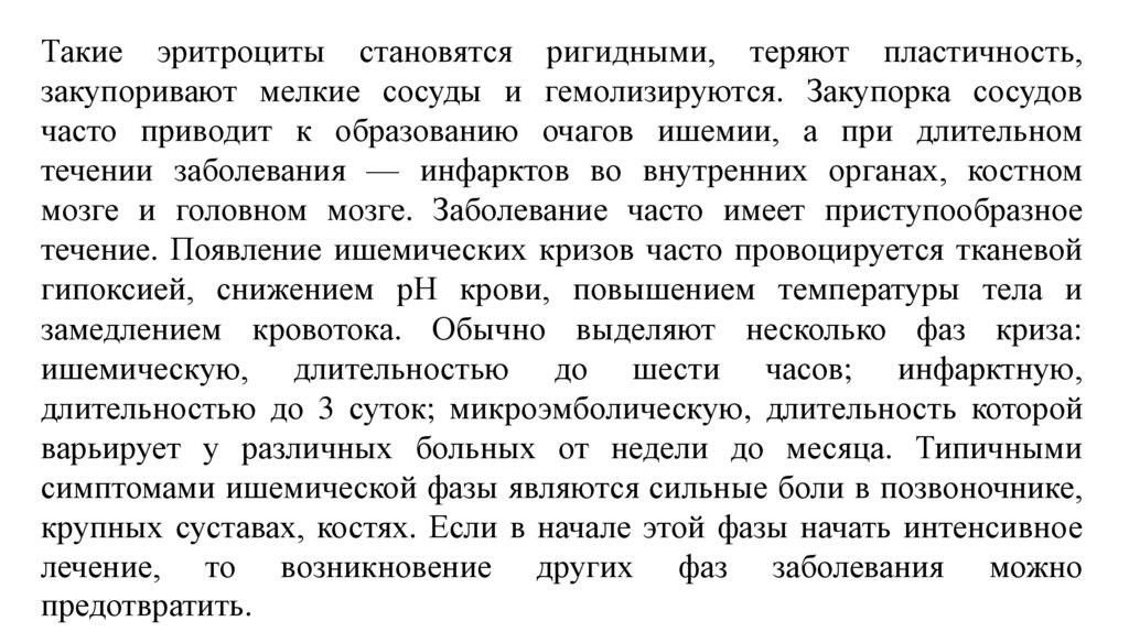Такие эритроциты становятся ригидными, теряют пластичность,закупоривают мелкие сосуды и гемолизируются. Закупорка сосудов