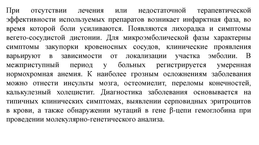 типичных клинических симптомах, выявлении серповидных эритроцитов