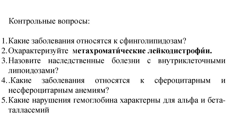 Контрольные вопросы:1.Какие заболевания относятся к сфинголипидозам?