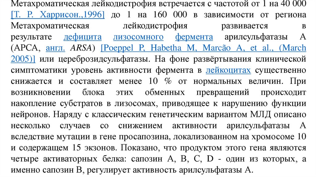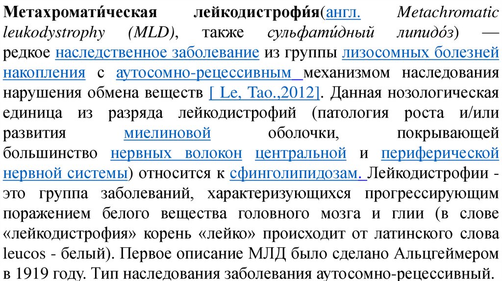 leukodystrophy (MLD), также сульфати́дный липидо́з) —
