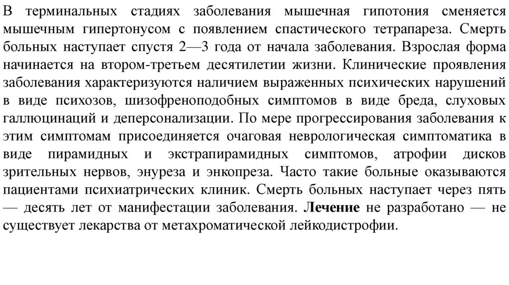 нервной системы) относится к сфинголипидозам. Лейкодистрофии это группа заболеваний, характеризующихся прогрессирующим