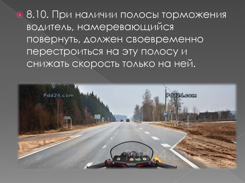8.10. При наличии полосы торможенияводитель, намеревающийся