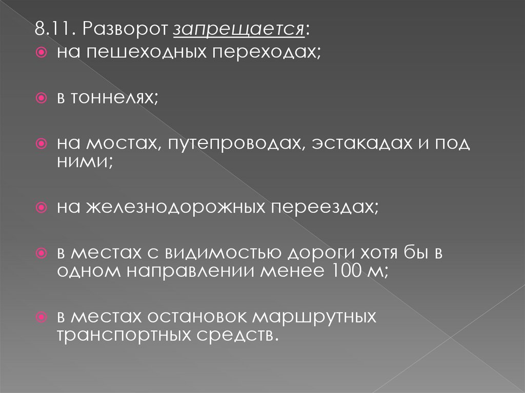 8.11. Разворот запрещается:на пешеходных переходах;