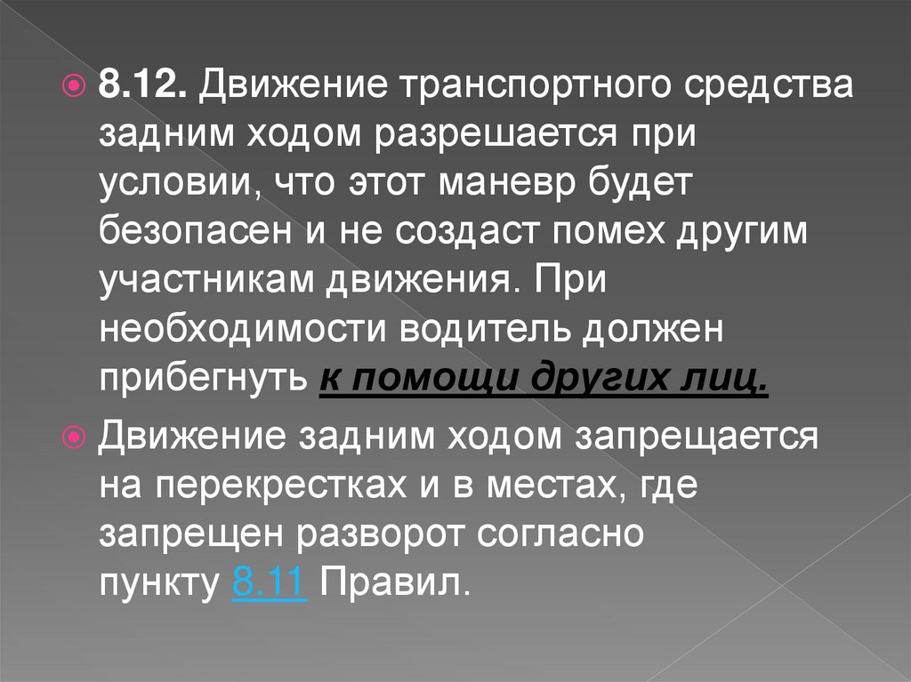 8.12. Движение транспортного средствазадним ходом разрешается при