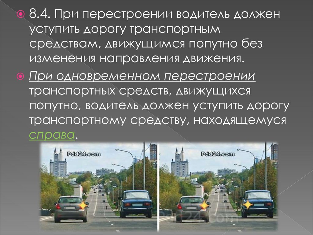 8.4. При перестроении водитель долженуступить дорогу транспортным