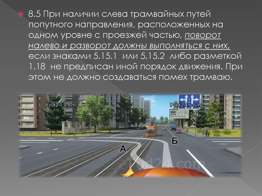 8.5 При наличии слева трамвайных путейпопутного направления, расположенных на