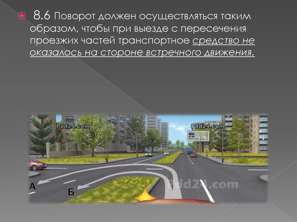 8.6 Поворот должен осуществляться такимобразом, чтобы при выезде с пересечения