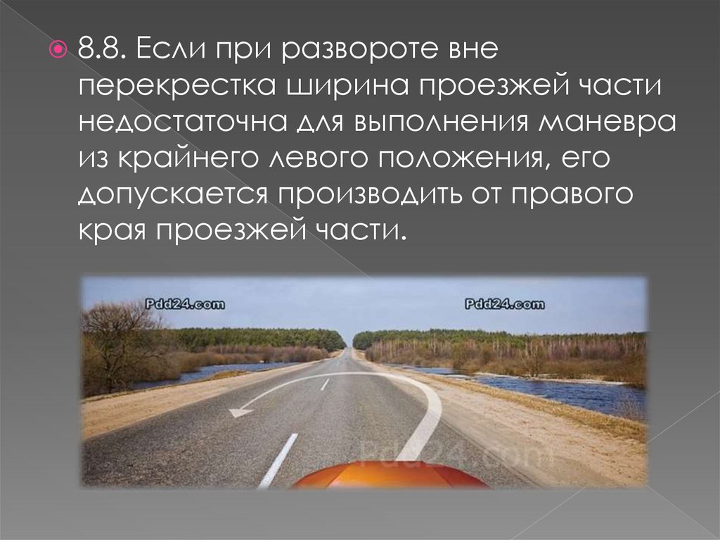 8.8. Если при развороте внеперекрестка ширина проезжей части