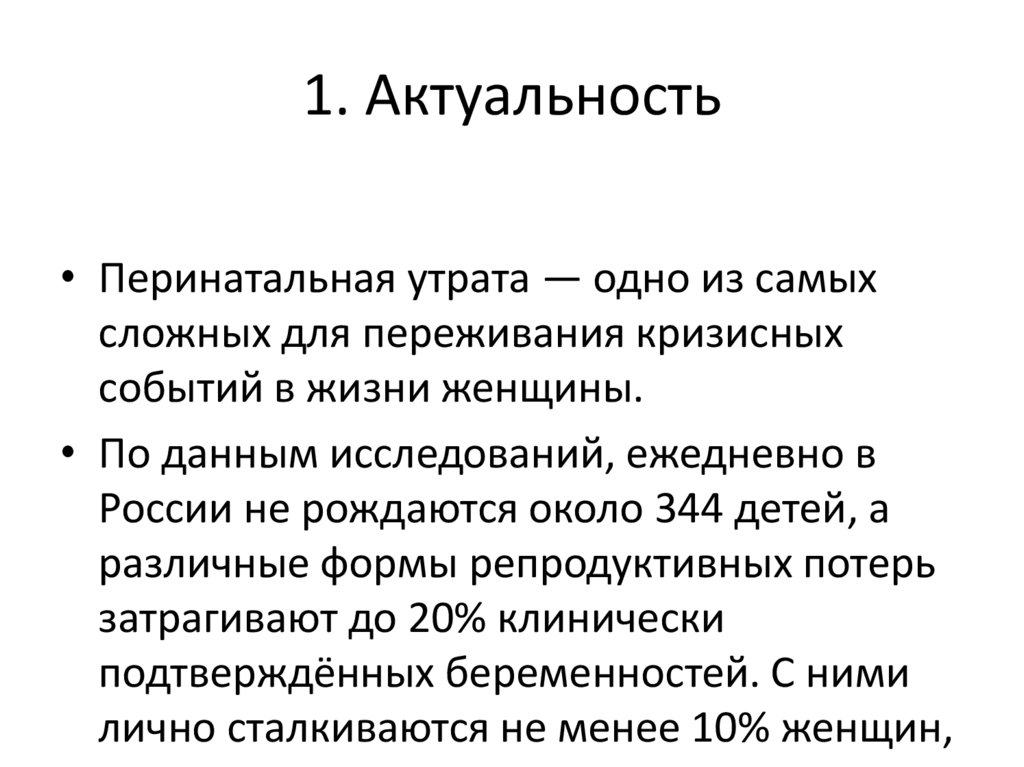 1. Актуальность• Перинатальная утрата — одно из самых