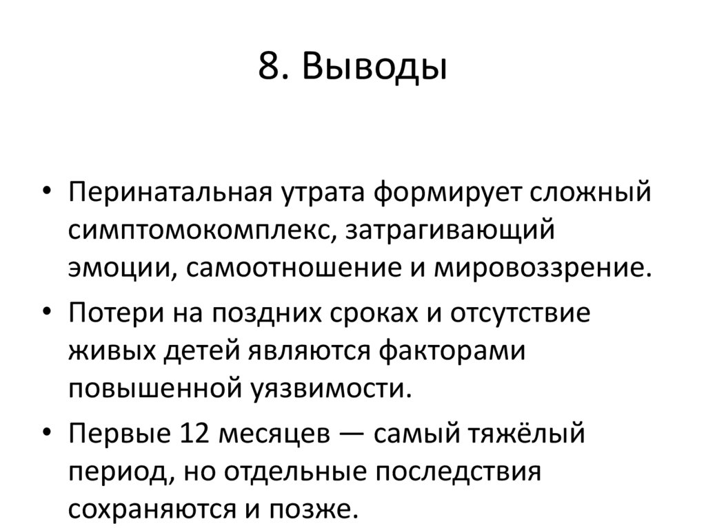 8. Выводы• Перинатальная утрата формирует сложный
