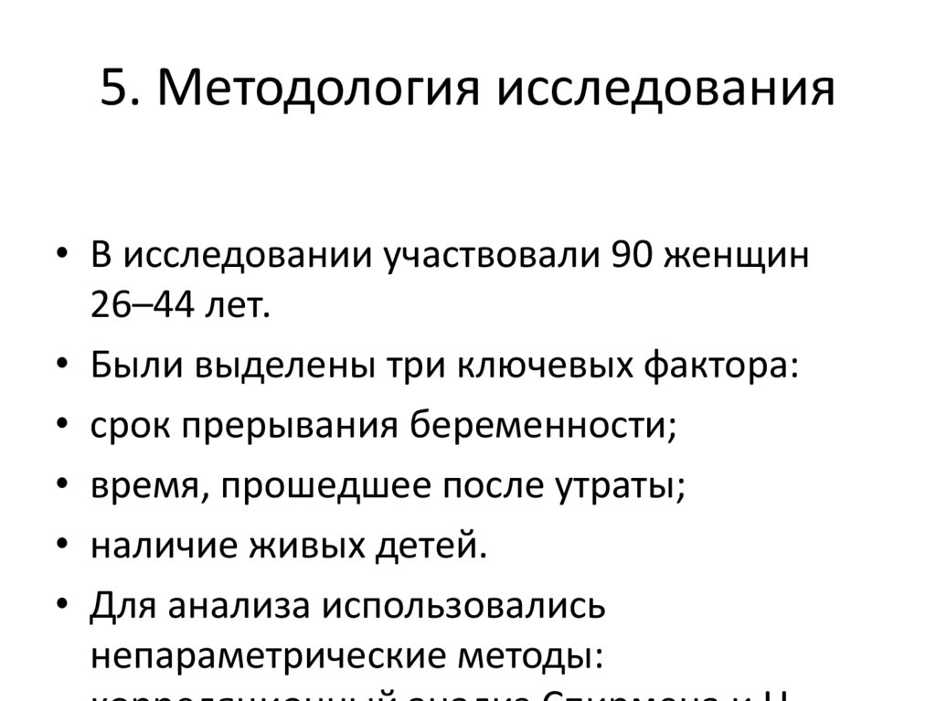 5. Методология исследования• В исследовании участвовали 90 женщин