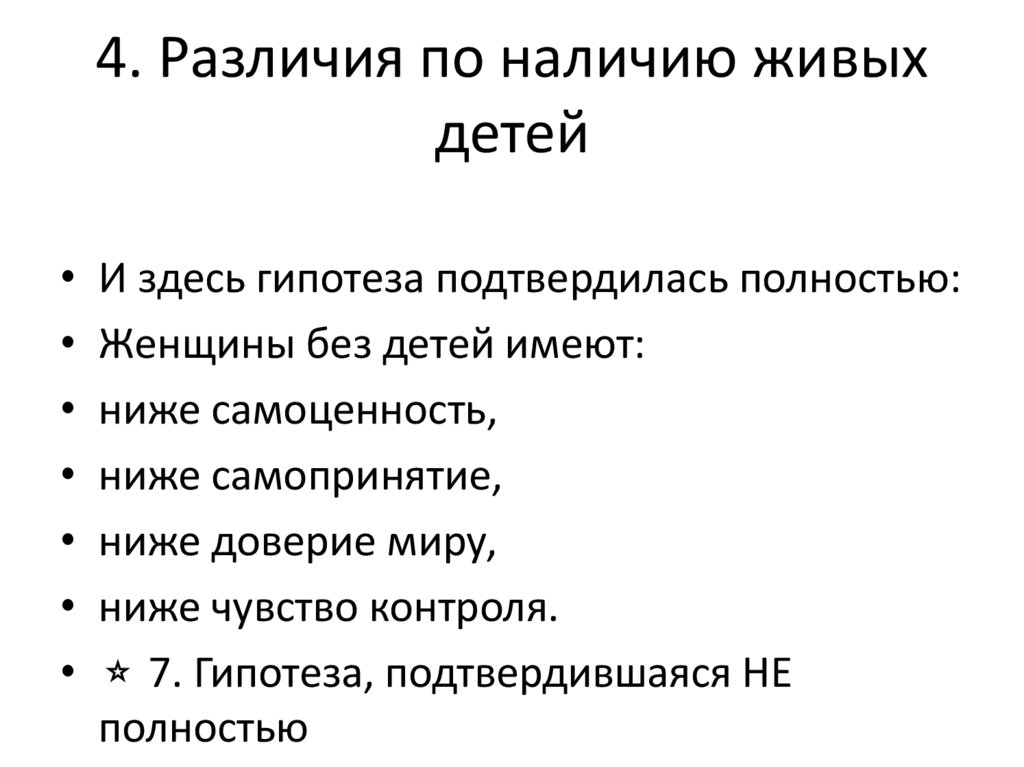4. Различия по наличию живыхдетей