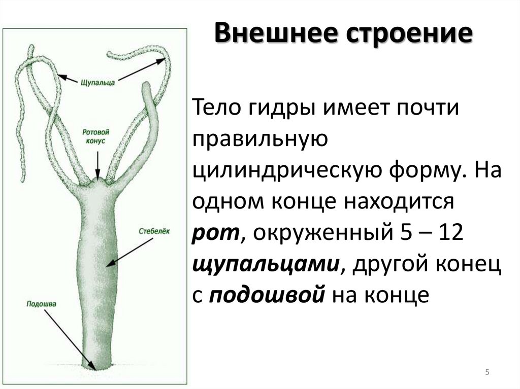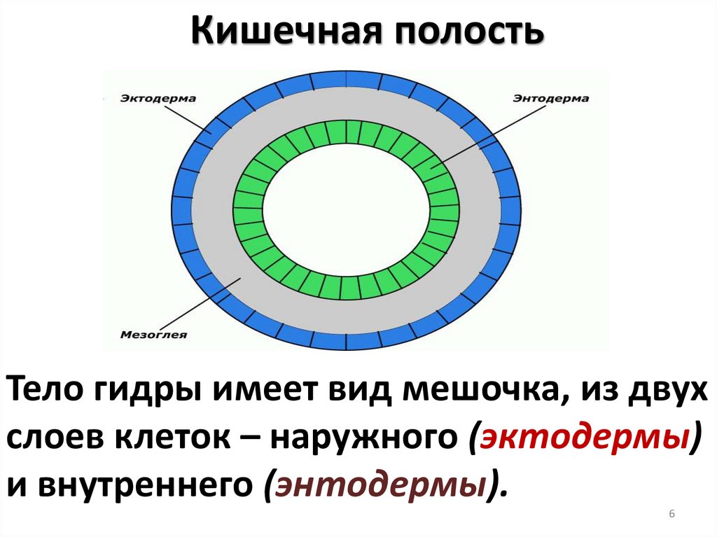 Кишечная полостьТело гидры имеет вид мешочка, из двух