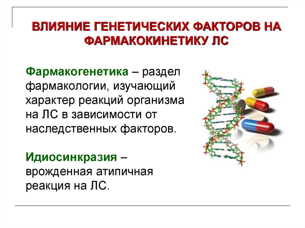 ВЛИЯНИЕ ГЕНЕТИЧЕСКИХ ФАКТОРОВ НАФАРМАКОКИНЕТИКУ ЛС