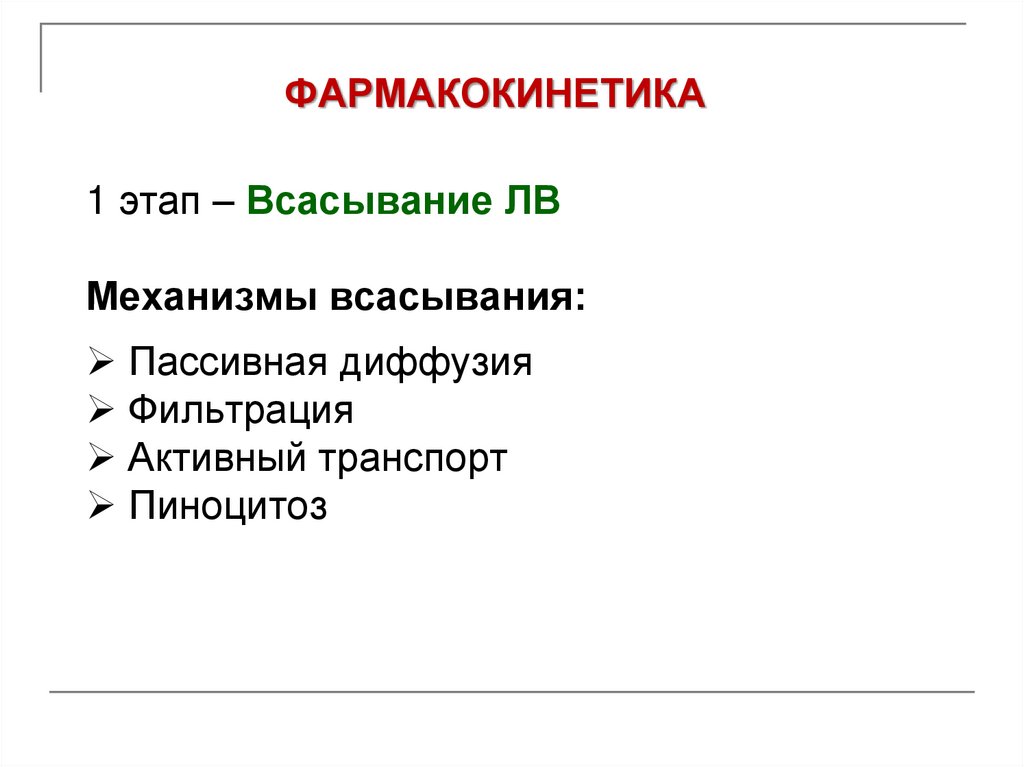 ФАРМАКОКИНЕТИКА1 этап – Всасывание ЛВ