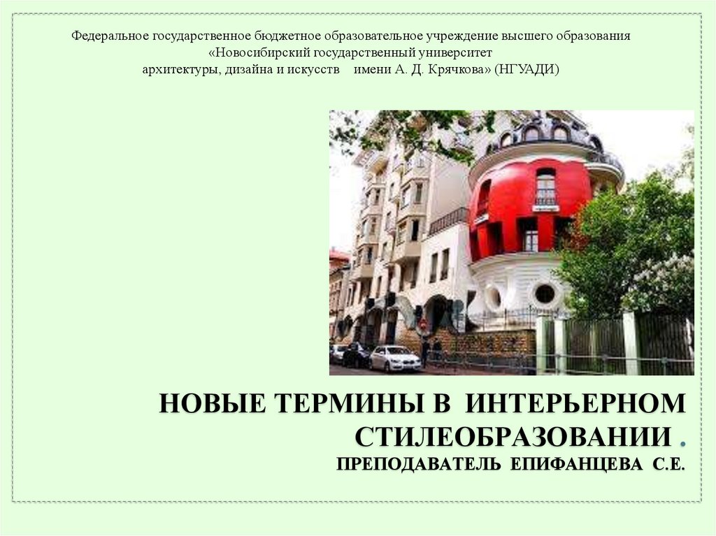 1. Новые термины в интерьерном стилеобразовании . ПРЕПОДАВАТЕЛЬ ЕПИФАНЦЕВА С.Е.