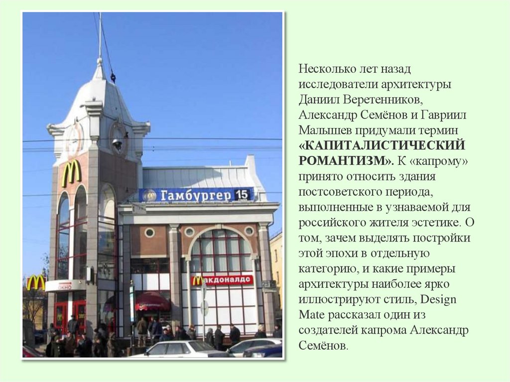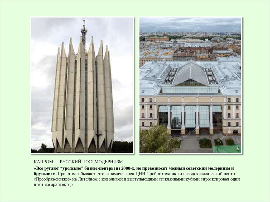 КАПРОМ — РУССКИЙ ПОСТМОДЕРНИЗМ«Все ругают “уродские” бизнес-центры из 2000-х, но превозносят модный советский модернизм и
