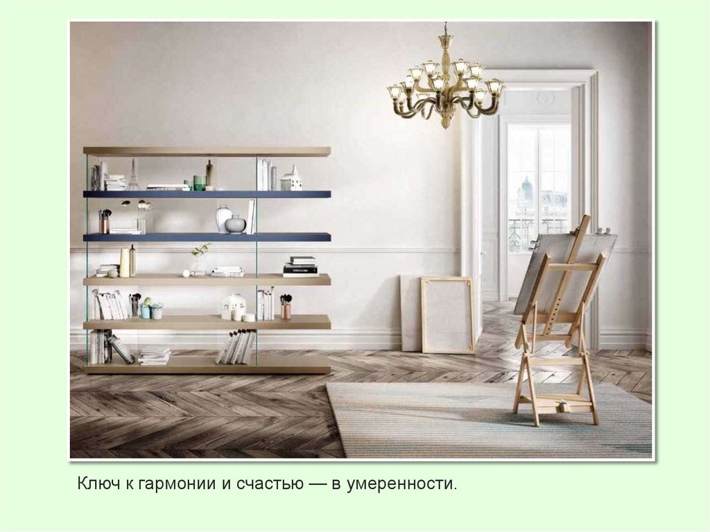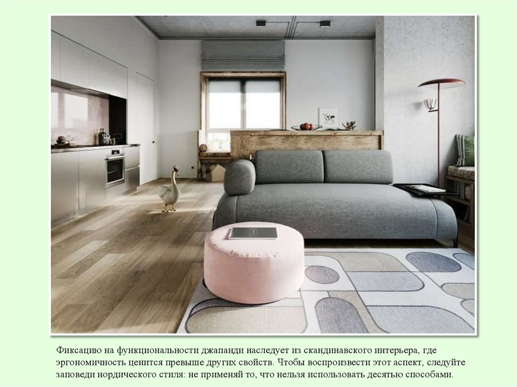 отсутствие захламленности, светлое пространство, отказ от многочисленного декора.