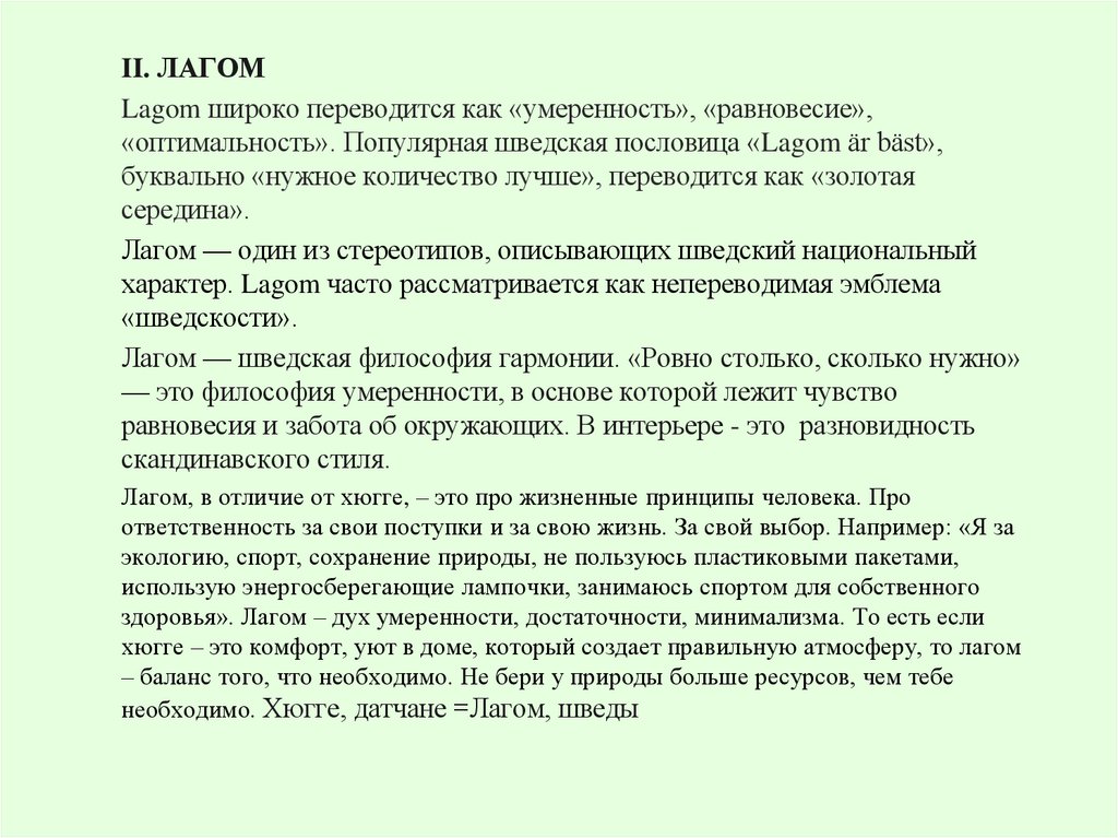 II. ЛАГОМLagom широко переводится как «умеренность», «равновесие»,