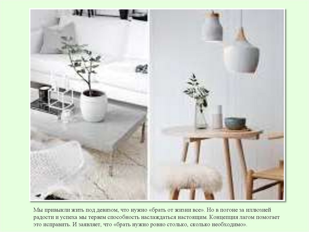 здоровья». Лагом – дух умеренности, достаточности, минимализма. То есть если