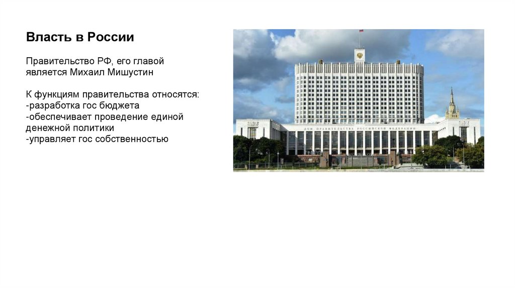 Власть в РоссииПравительство РФ, его главой