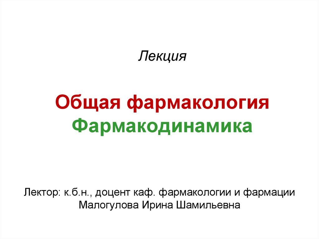 Лектор: к.б.н., доцент каф. фармакологии и фармацииМалогулова Ирина Шамильевна