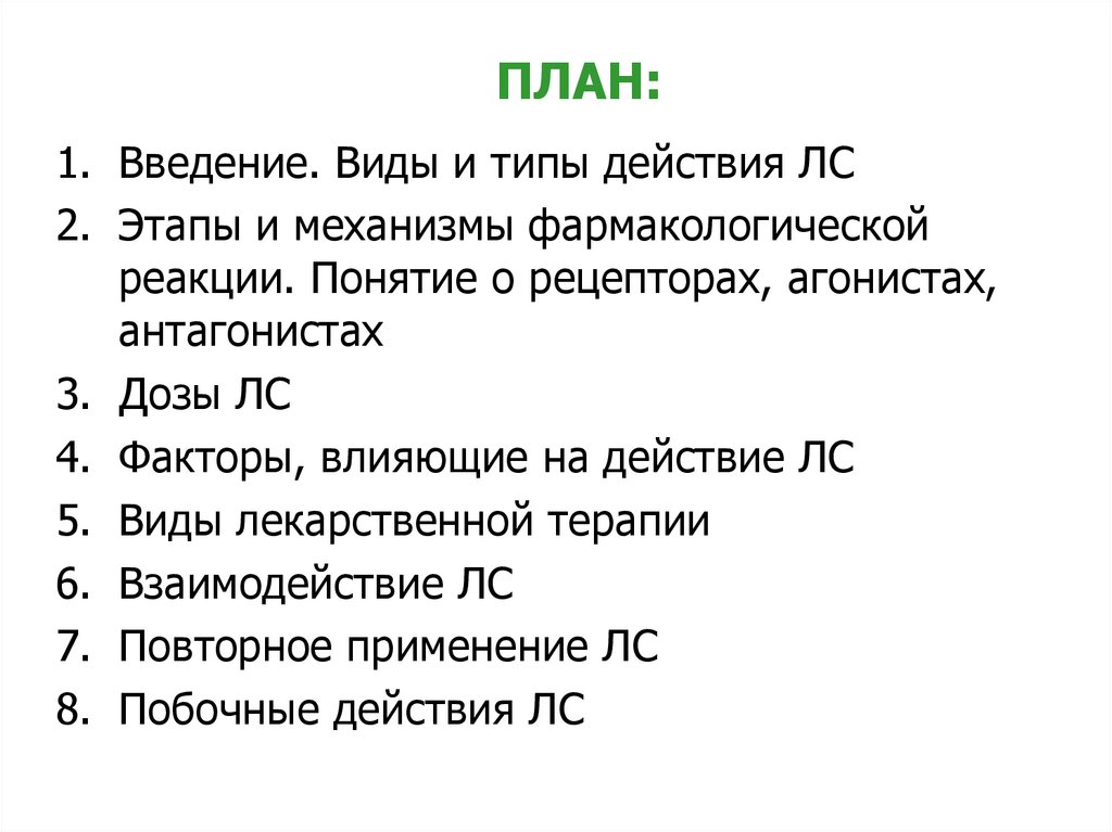 ПЛАН:1. Введение. Виды и типы действия ЛС