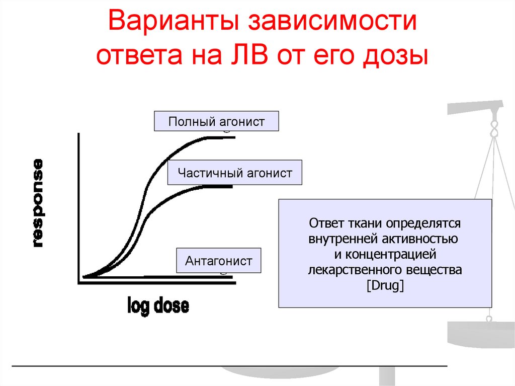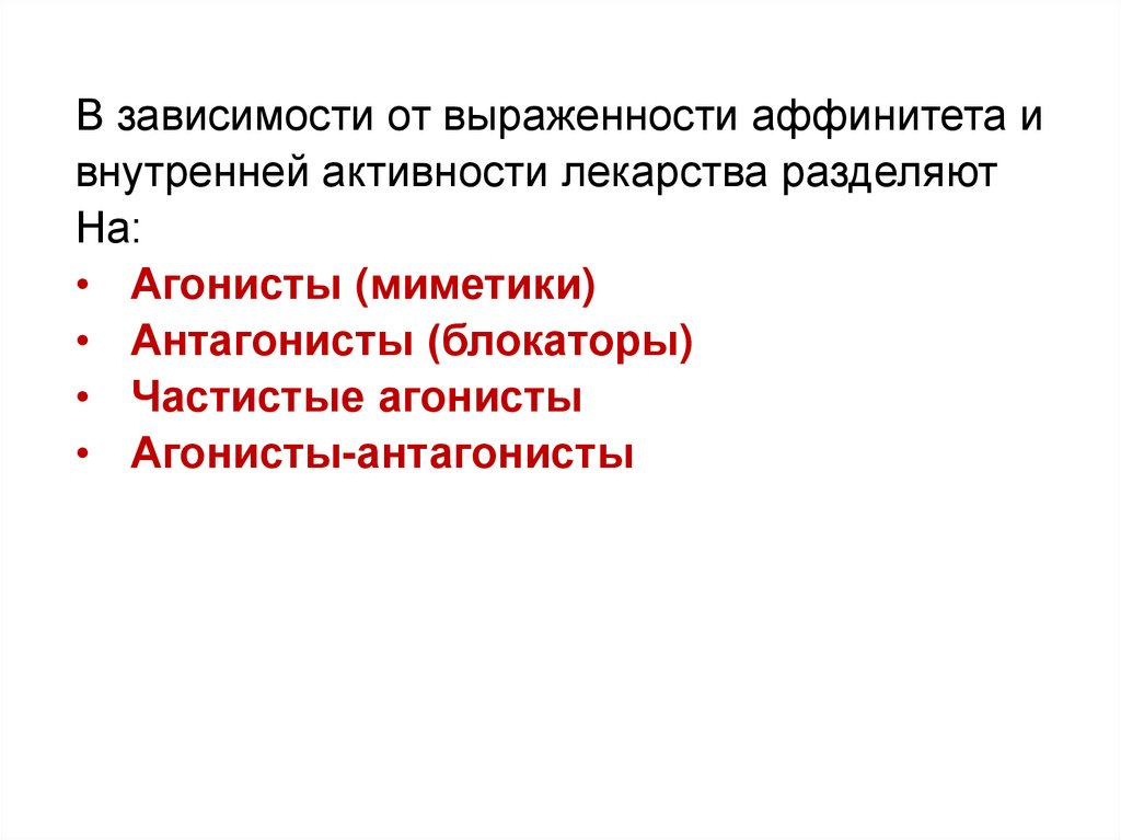 В зависимости от выраженности аффинитета ивнутренней активности лекарства разделяют