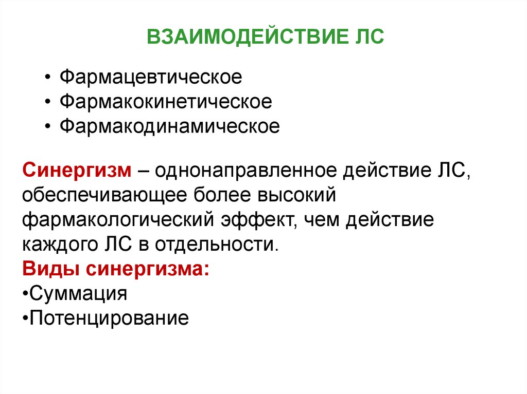 ВЗАИМОДЕЙСТВИЕ ЛС• Фармацевтическое