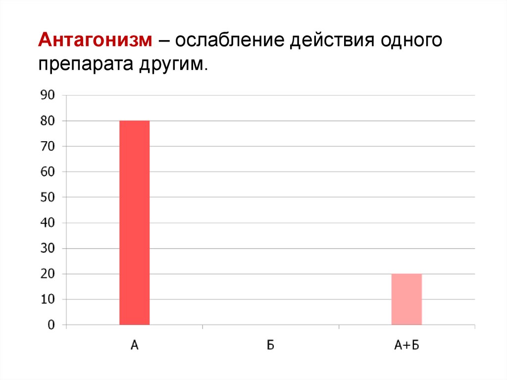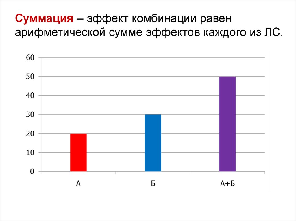 Суммация – эффект комбинации равенарифметической сумме эффектов каждого из ЛС.