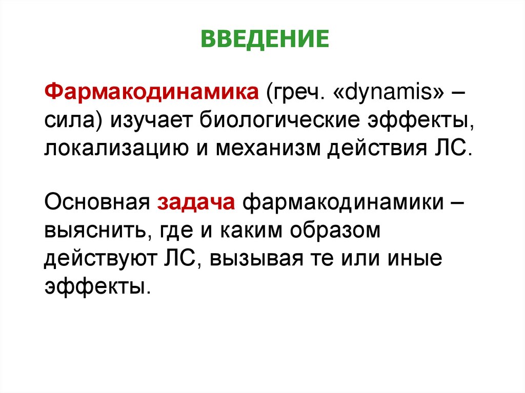 ВВЕДЕНИЕФармакодинамика (греч. «dynamis» –