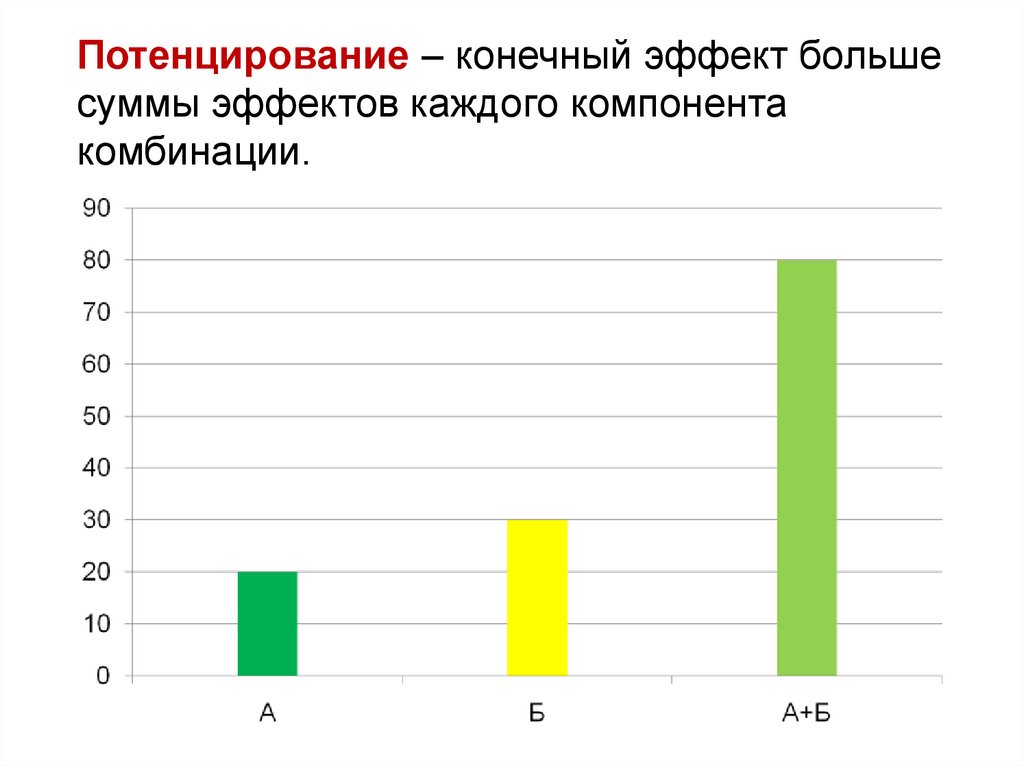 Потенцирование – конечный эффект большесуммы эффектов каждого компонента